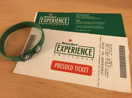 我們在2015年到訪時成人門票18元,2022年已經悄悄漲到21歐元囉,官網購票連結Heineken®Tour,有個購票小撇步,如果在荷蘭國家博物館前票亭買票有折價2歐,也不用到現場再排隊買票,入場後會發手環,上面的兩顆小綠綠待會自有妙用